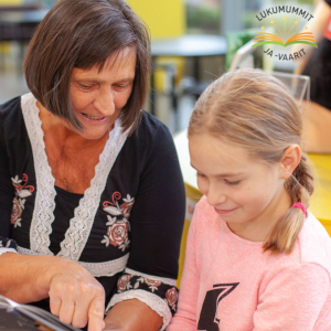 Lukumummien ja -vaarien nettisivuilta (lukumummitjavaarit.fi/materiaalit/materiaalia-kouluille/) löytyy muun muassa tulostettava Lukupassi, jossa on erilaisia lukemiseen ja kielellisten taitojen kehittämiseen liittyviä tehtäviä. Tehtäviä tekemällä lapsi voi saavuttaa aikuisen kanssa yhdessä sovittuja, pieniä palkintoja. Pienet palkinnot auttavat motivoimaan niitäkin lapsia, joille lukeminen tuntuu haastavalta tai jotka eivät tykkää lukemisesta. Lukemisintoa levitetään myös erilaisten lukuhaasteiden ja kirjalistojen kautta. Tulevaa kesälomaa jo ajatellen toiminnallisia lukuhaasteita löytyy kolme, joista kahdessa on teema: Luetaan ja pelataan ja Luetaan ja liikutaan. Näissä lukuhaasteissa muistutetaan, että sekä pelaaminen että lukeminen ovat hauskoja tapoja viettää aikaa yhdessä ja lukeminen on hyvä tapa rentoutua liikkumisen jälkeen – tai voihan lukemisen ja liikkumisen myös yhdistää! Lukuhaasteissa on mukana myös teemaan sopivia kirjavinkkejä.